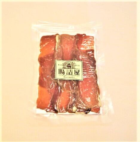 豚モモ肉を長時間漬け込み、スモーク、長期熟成したドイツ伝統の 生ハムです。